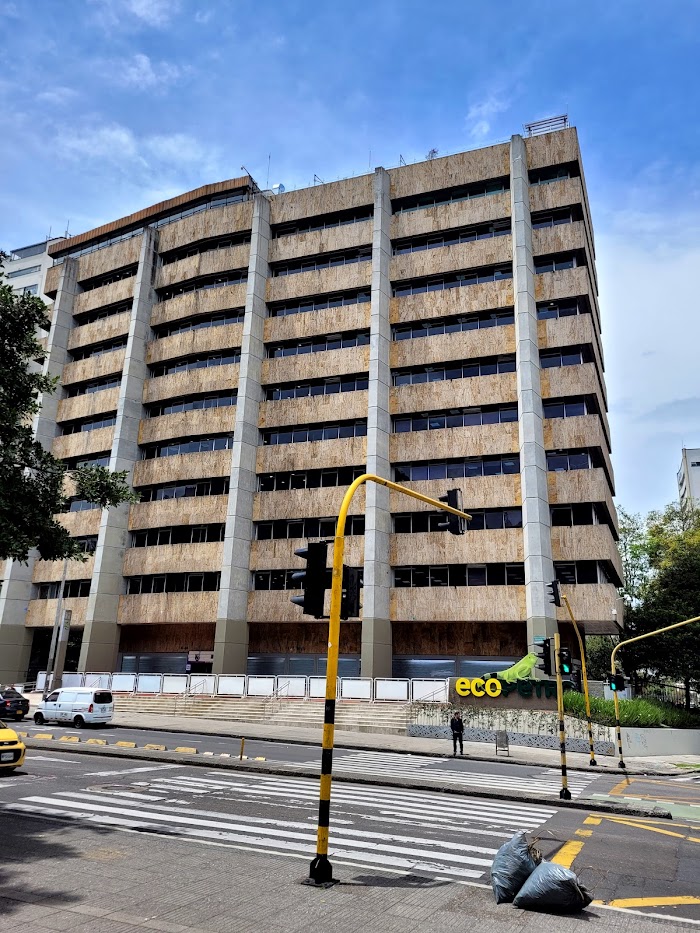 El símbolo del poder económico de Bogota, situado muy cerca del Parque Nacional, 14 pisos de concreto, en su entrada encuentras las cabezas de lo que fueron grandes taladros que desgarraron la tierra para traernos algo de esperanza para acceder a un mundo industrializado